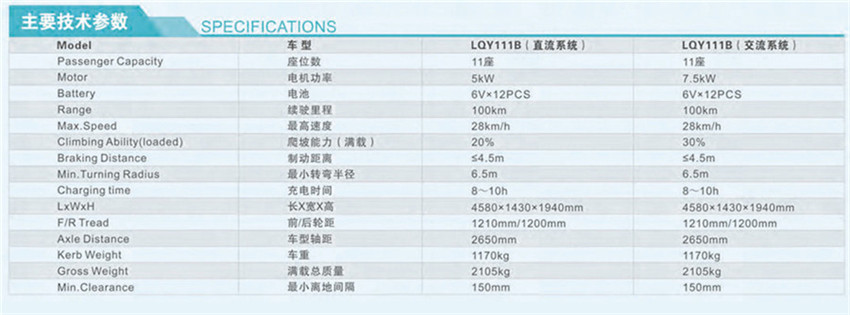 觀光車_11座電動觀光車(chē)LQY111B產品參數: